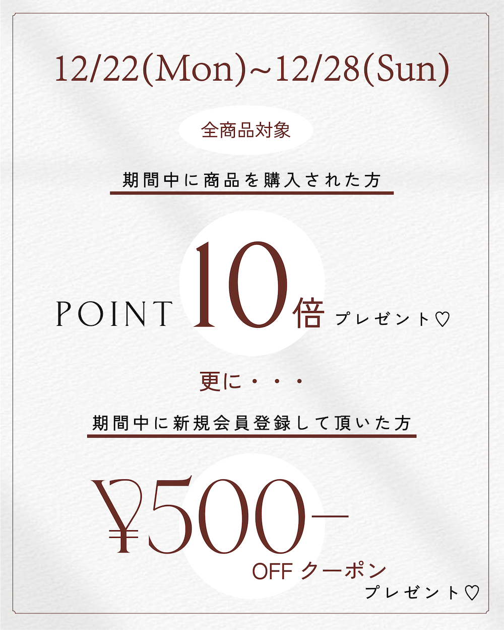 2025 12,22~ ポイント10倍&500円クーポン配布キャンペーンの詳細はこちら