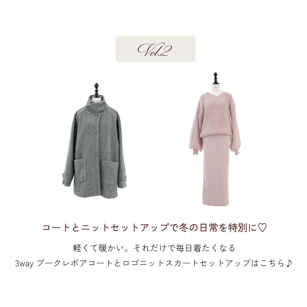 2025 11,01 ロゴニットスカートセットアップ、3ウェイネックブークレボアコートの詳細はこちら