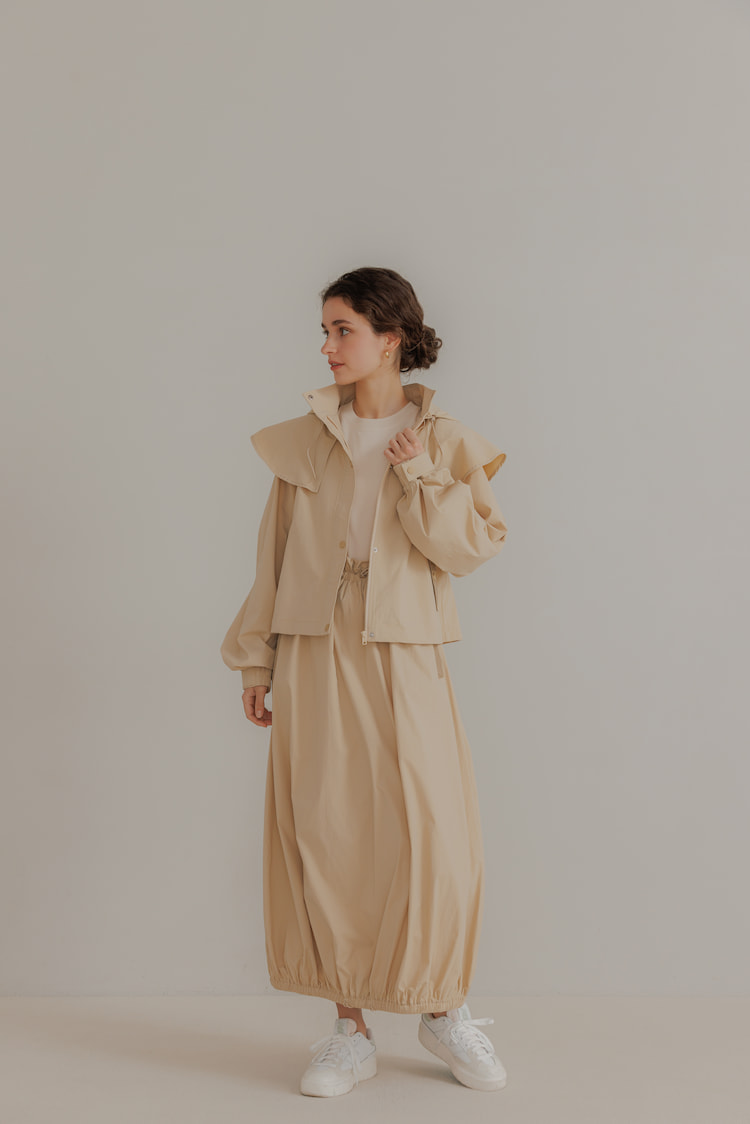 撥水ケープブルゾンとセットアップとしても着用できます。