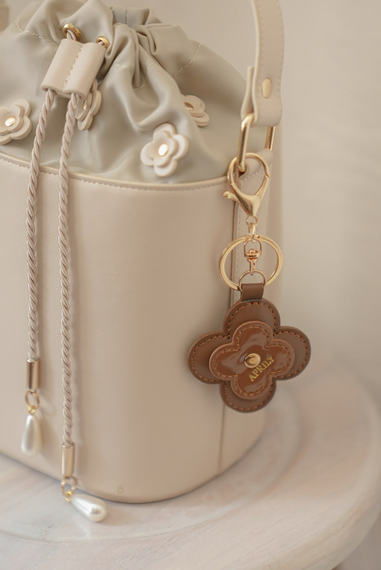 トートバッグで使用したお花をチャームとしても楽しめるデザイン。